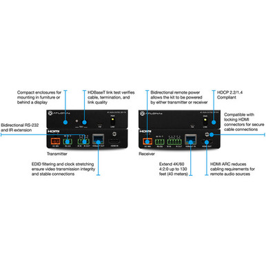 Bidirectional remote power allows the kit to be powered by either the transmitter or the receiver over HDBaseT