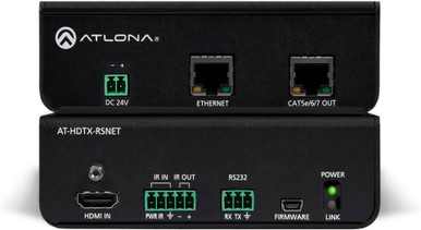 4K/UHD HDBaseT Transmitter with Ethernet and RS-232 Control Extension The Atlona AT-HDTX-RSNET is the professional-grade transmitting (TX) component of an HDBaseT extension system. It is engineered for use in demanding commercial environments like large boardrooms, control centers, and educational facilities, allowing for the maximum extension distance specified by the HDBaseT standard.