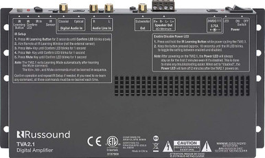 Product Description Designed to integrate with TVs and displays and provide enhanced audio, 35W per channel at 4 Ohms, mounts behind TV or in structured wiring enclosure, 24 bit / 96 kHz SPDIF, optical and analog line level inputs, IR sensor input, on board IR learning, integrated subwoofer output. Product information Product Dimensions 11.