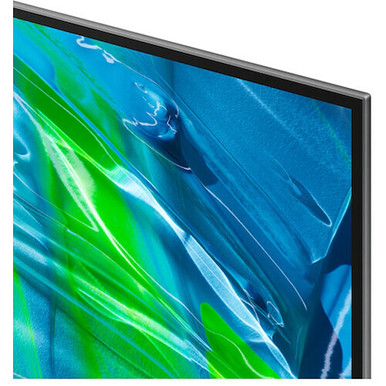 The QN55S95BA features Samsung’s Quantum Dot OLED panel, delivering precise color reproduction and deep black levels by combining OLED self-lighting pixels with quantum dot filtering for improved brightness and contrast.