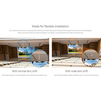 - Wide choice of separately available interchangeable lenses with lens shift adjustment for installation flexibility